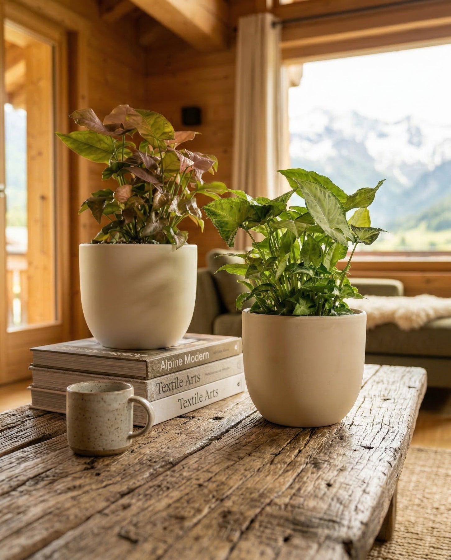 Doppelt Syngonium, doppelt charmant. Diese beiden Purpurtuten mit rosa und grünen Blättern sind in der Schweiz im Spezialsubstrat groß geworden und zeigen dir, wie harmonisch Gegensätze sein können. 💚🩷