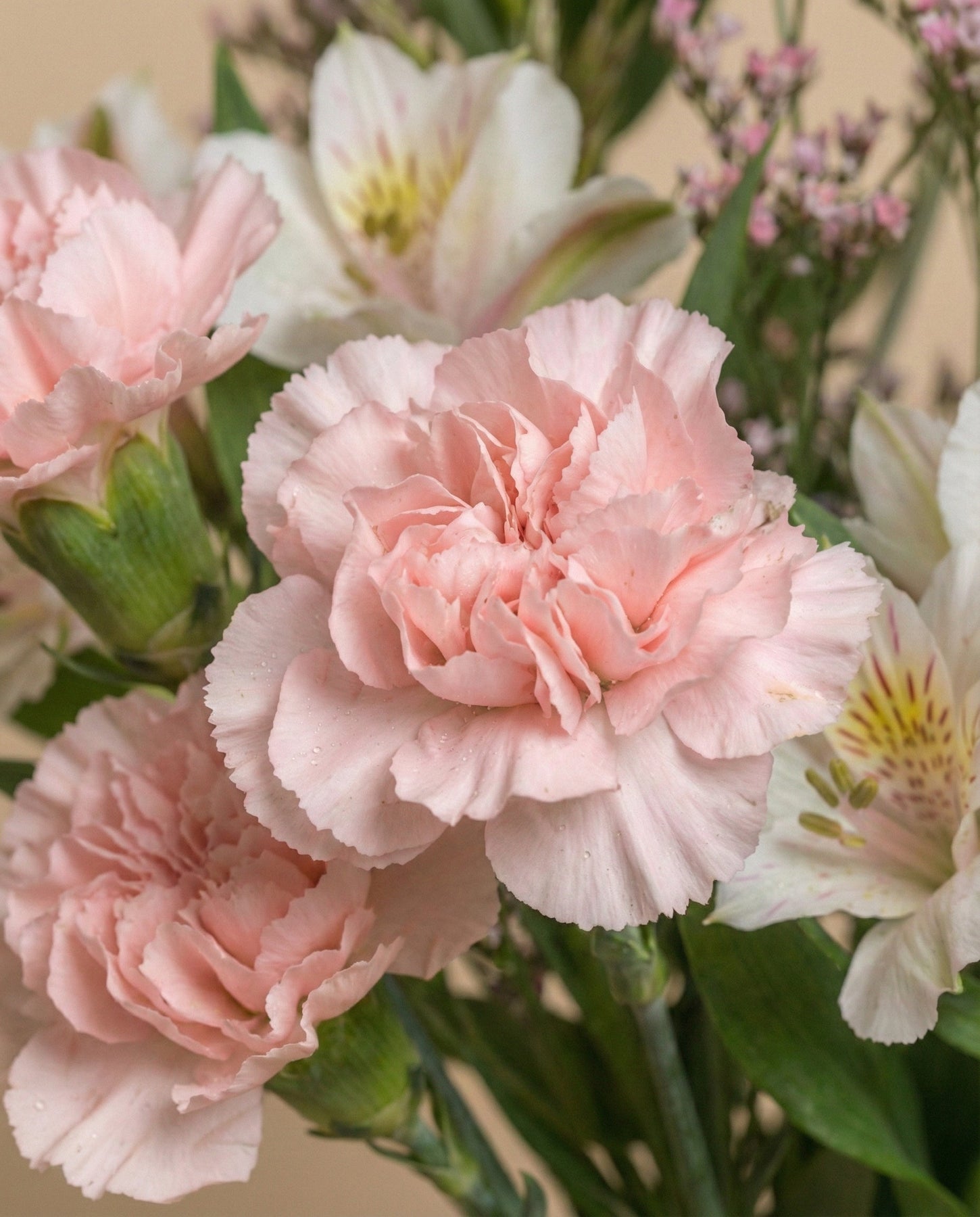 Weiße Alstroemerien und Dianthus (Nelken) oder ähnlich