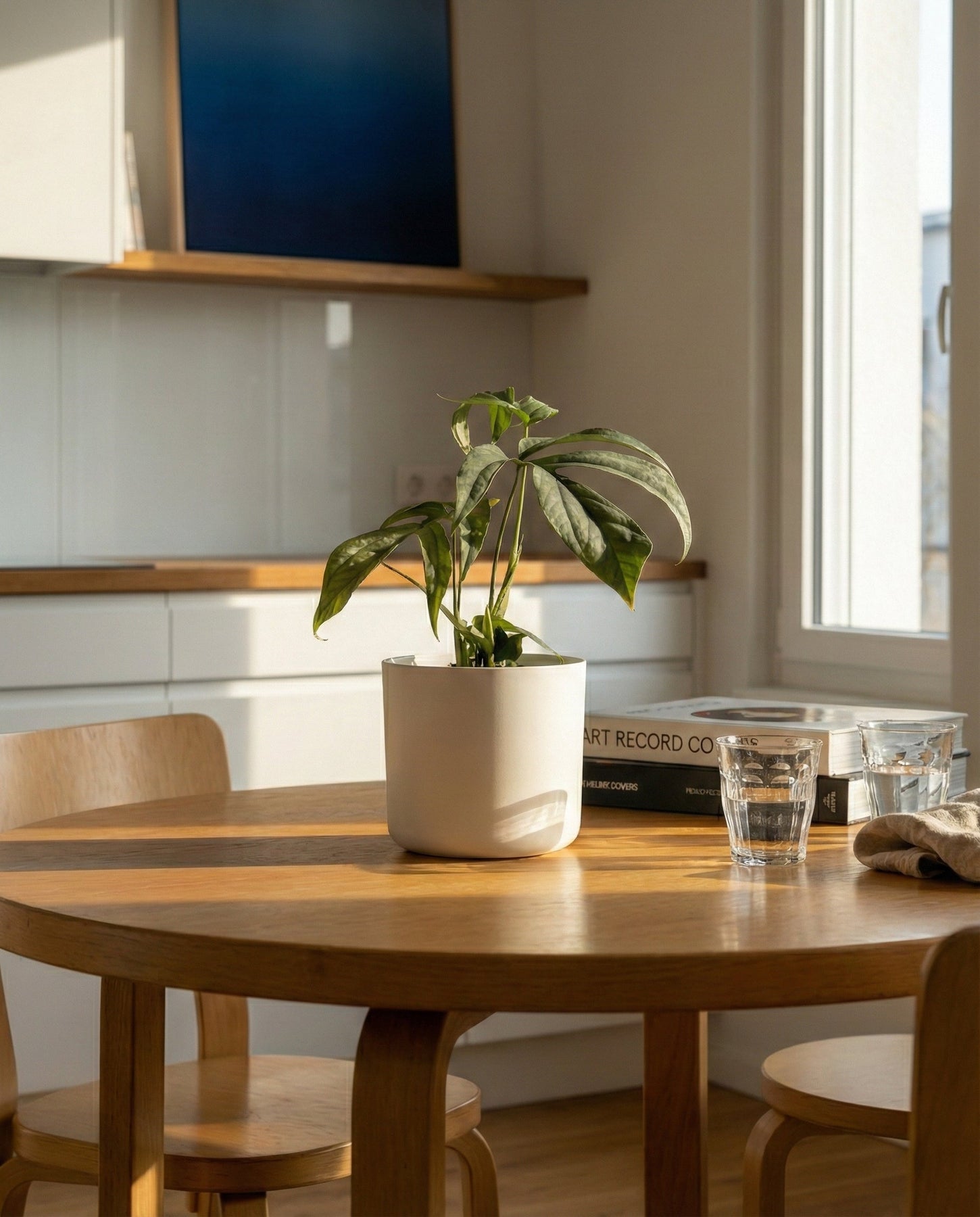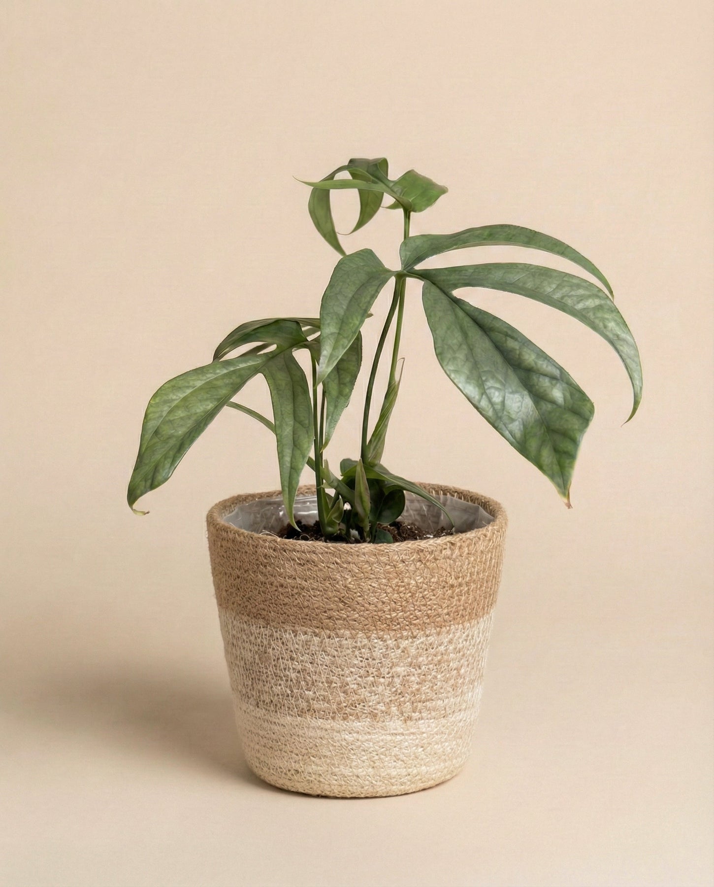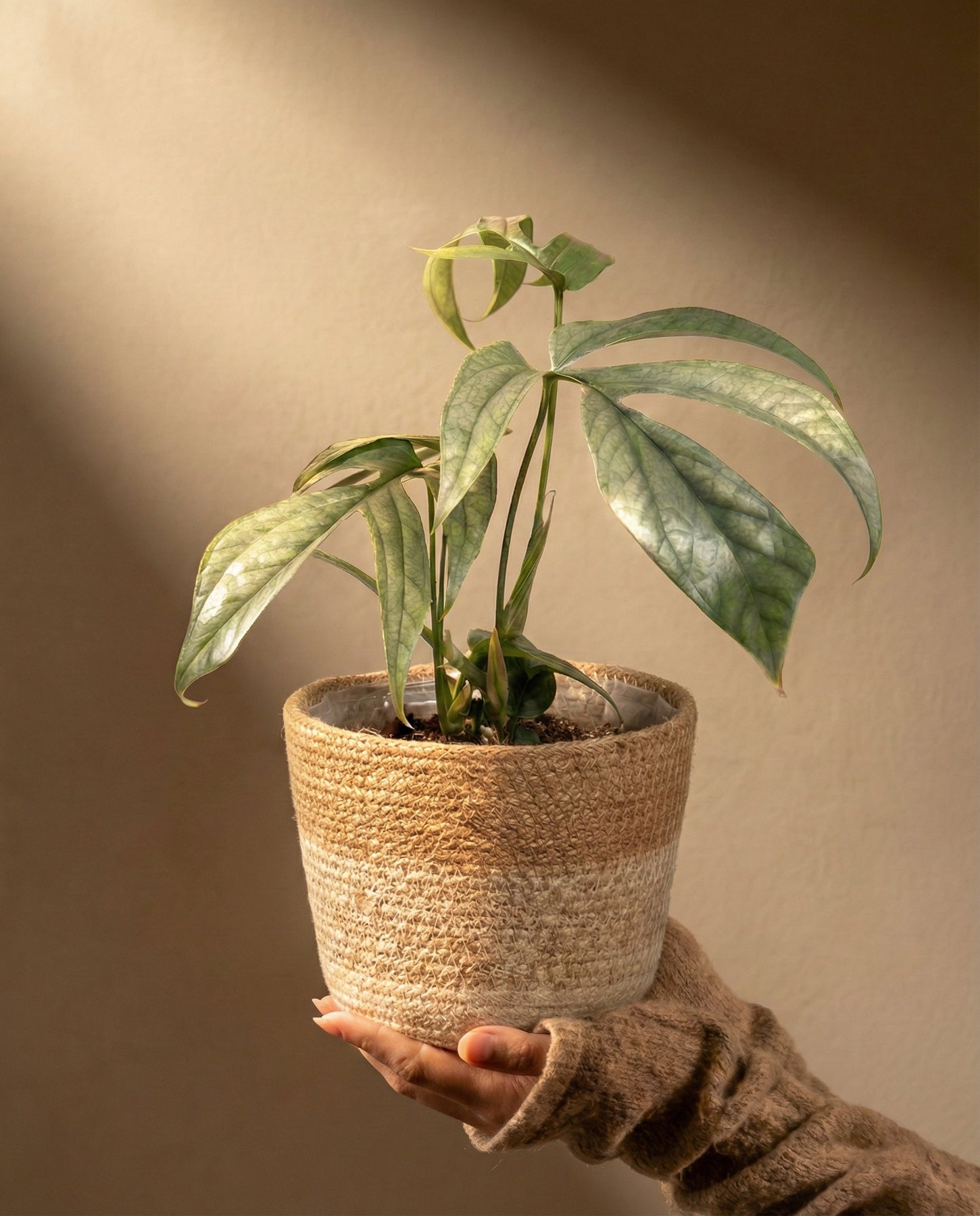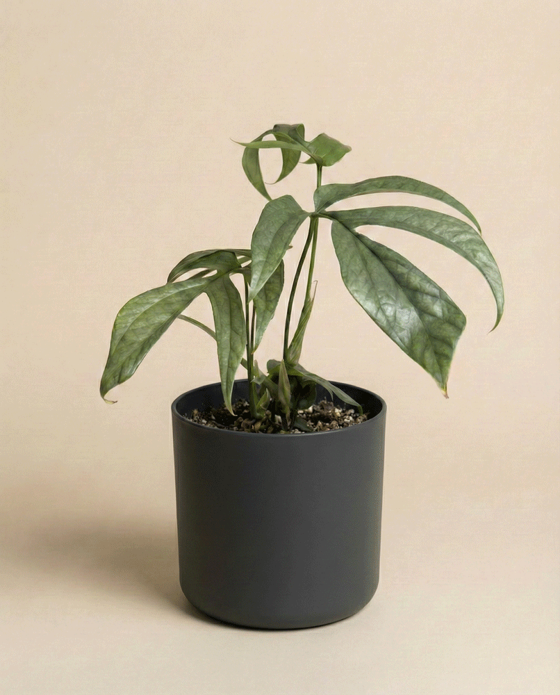 Herbst - Winter: In dieser Zeit macht die silbrige Amydrium eine Wachstumspause und braucht weniger Wasser. Mach den Fingertest nur noch etwa alle 10 Tage.