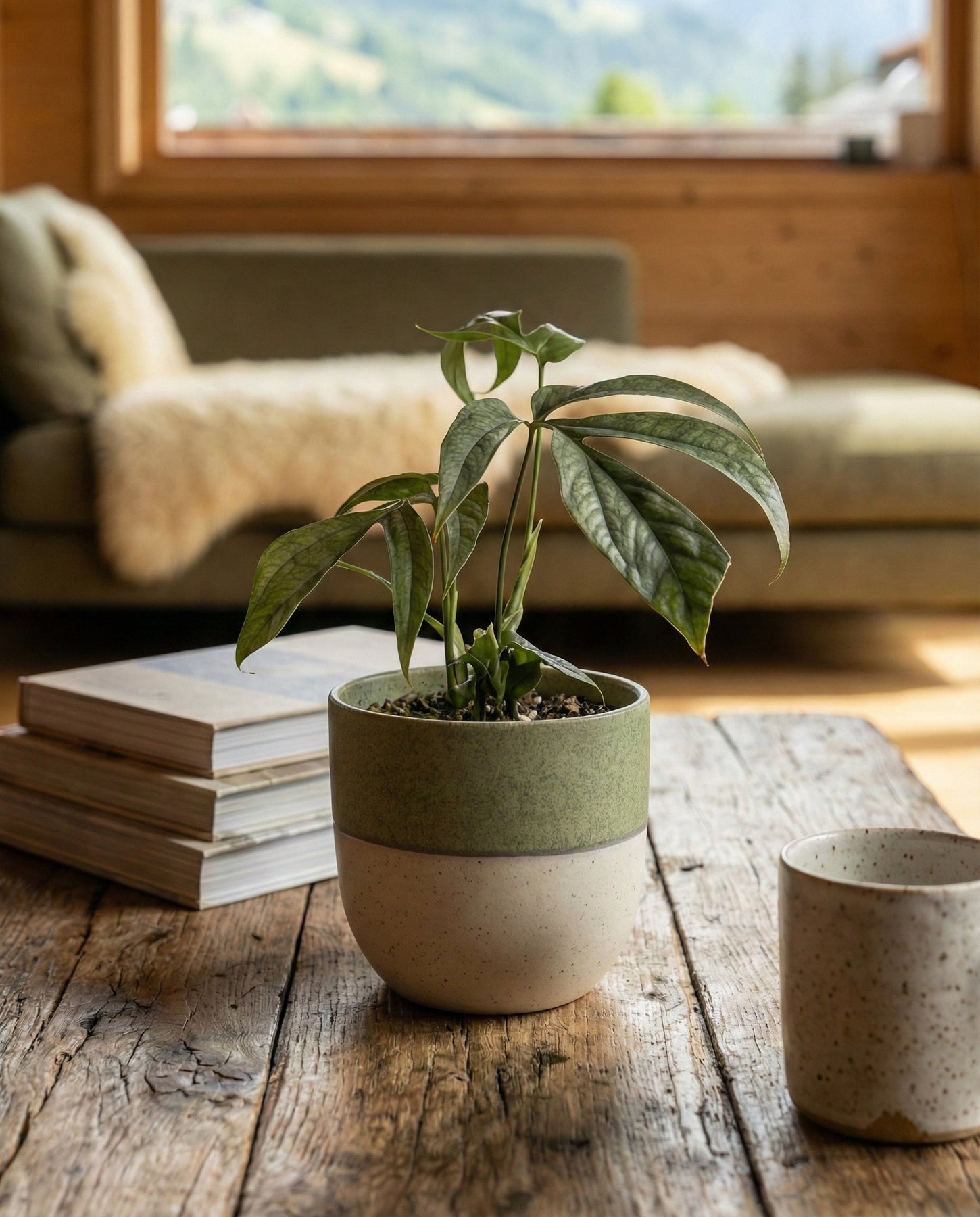 👉🏼 Zimmerpflanze, frisch mit Spezial-Substrat von feey in einen passenden Innentopf gepflanzt